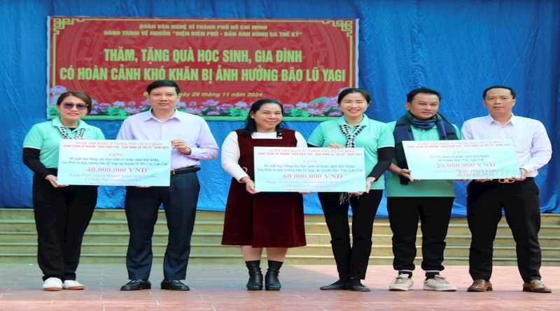 (Thanhuytphcm.vn) - Ngày 29/11, đoàn đại biểu văn nghệ sĩ TPHCM tham gia hành trình về nguồn năm 2024 chủ đề “Điện Biên Phủ - Bản anh hùng ca thế kỷ” đã đến xã Phúc Khánh, huyện Bảo Yên, tỉnh Lào Cai để tặng quà hỗ trợ người dân, học sinh nơi đây.
