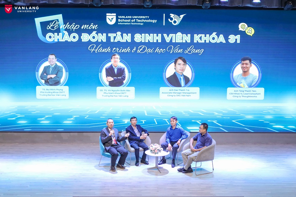 Trong phần giao lưu, các giảng viên, đại diện doanh nghiệp và cựu sinh viên đã chia sẻ nhiều kinh nghiệm thực tế, giúp tân sinh viên hiểu rõ hơn về kỹ năng học tập, định hướng nghề nghiệp và cơ hội phát triển trong lĩnh vực công nghệ.
