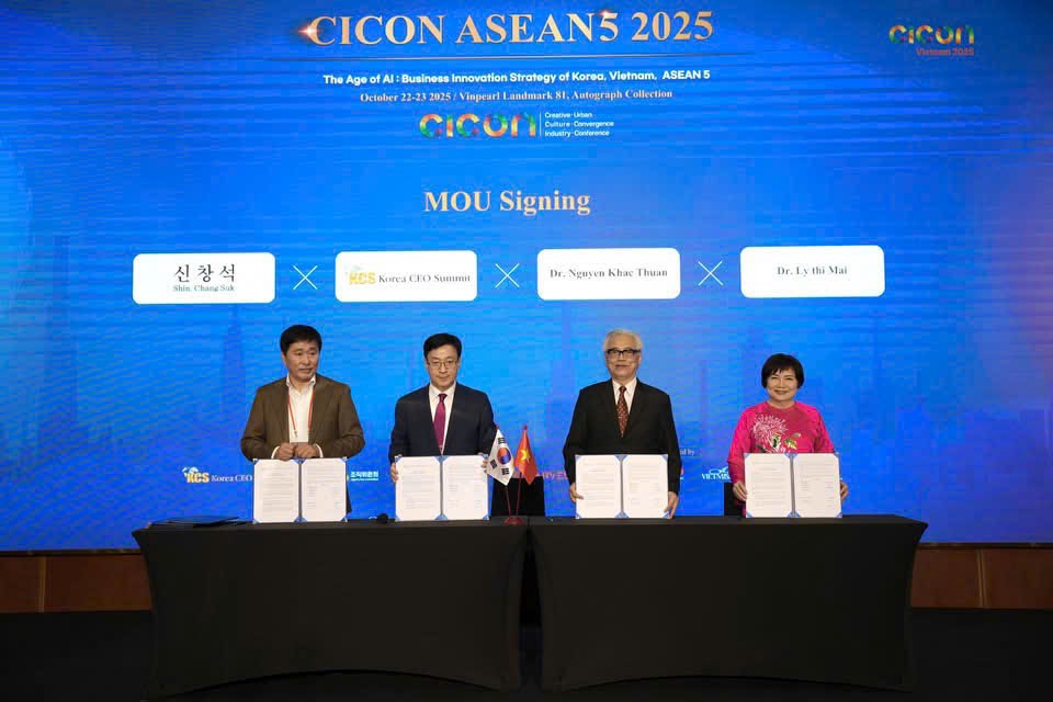 Trong hai ngày 22 - 23/10/2025, tại Landmark 81 -TP.HCM, sự kiện quốc tế CICON ASEAN 5+ 2025 với chủ đề “Thời đại AI: Chiến lược đổi mới kinh doanh của Hàn Quốc, Việt Nam và ASEAN 5+”(The Age of AI: Business Innovation Strategy of Korea, Vietnam, and ASEAN5+) đã trở thành không gian giao thoa giữa công nghệ, sáng tạo và giáo dục.
