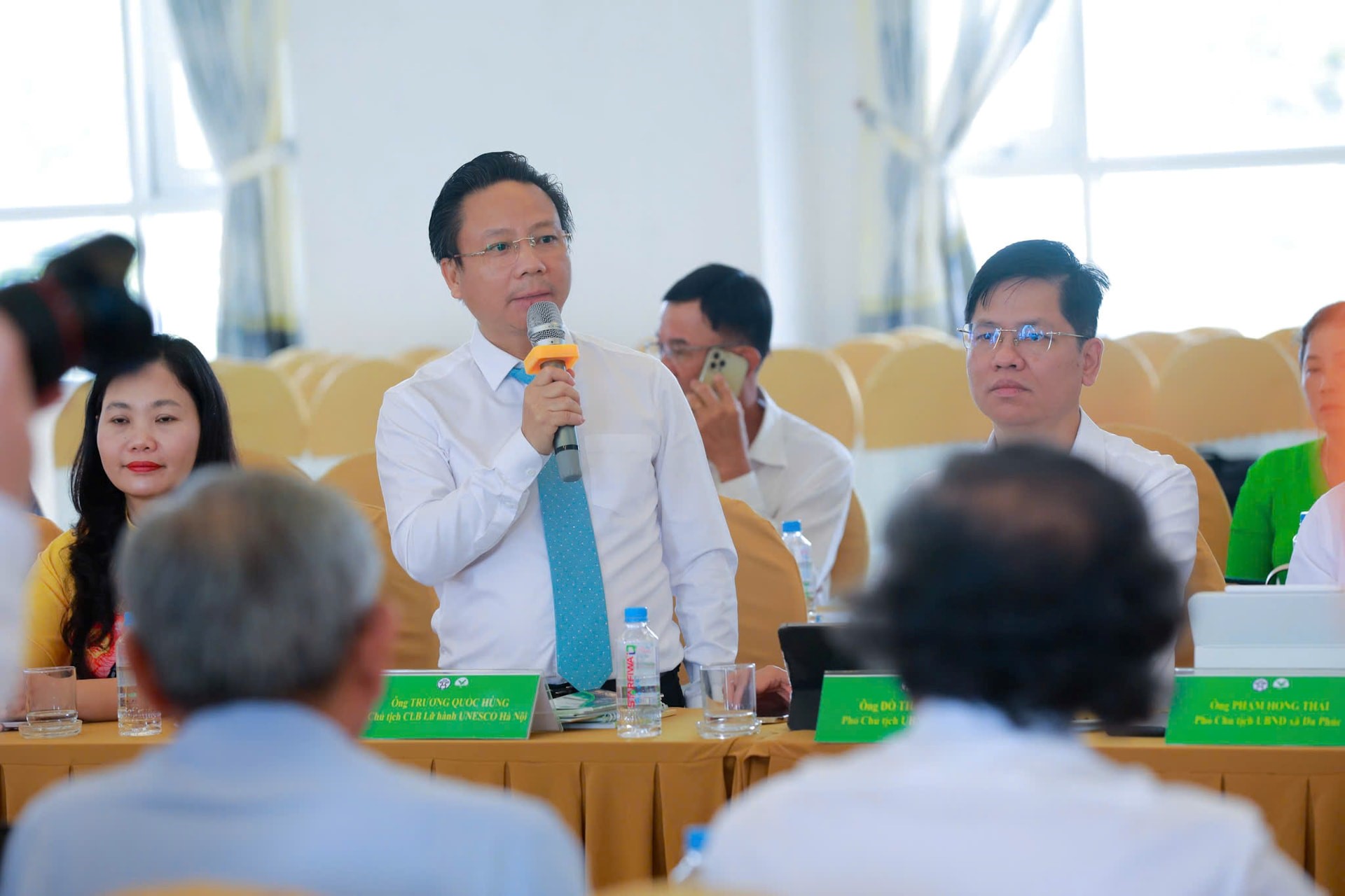 Chủ tịch Câu lạc bộ lữ hành UNESCO Hà Nội Trương Quốc Hùng chia sẻ ý kiến tại hội nghị. Ảnh: N.C