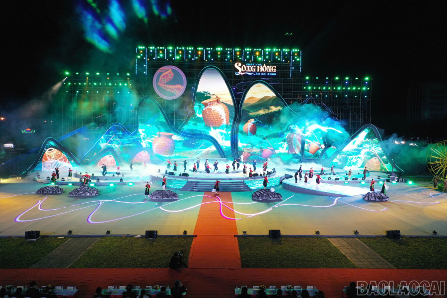 Ngay sau nghi thức khai mạc, Nhân dân và du khách được thưởng thức chương trình nghệ thuật đặc sắc với chủ đề “Nơi con sông Hồng chảy vào đất Việt”. Chương trình có sự góp mặt của nhiều nghệ sĩ nổi tiếng, như: divo Tùng Dương, ca sĩ Thu Thủy, Minh Quân, Tố Hoa, Khắc Hiếu… cùng các đoàn nghệ thuật Trung ương và gần 1.000 nghệ nhân, diễn viên của tỉnh Lào Cai và các tỉnh bạn.