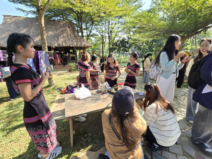 Cùng với đó là phần giao lưu của các nhóm đồng bào dân tộc Xơ Đăng, Cơ Tu, Tà Ôi, Ba Na, Gia Rai đang hoạt động hằng ngày tại Làng.