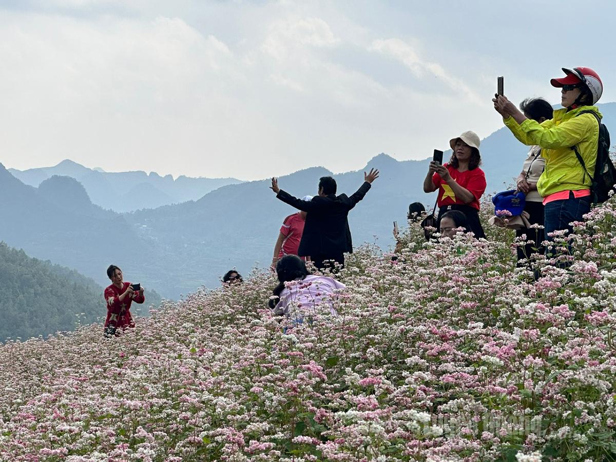 Khách du lịch thỏa thích trải nghiệm, check in trên đồi hoa tam giác mạch, xã Lũng Cú