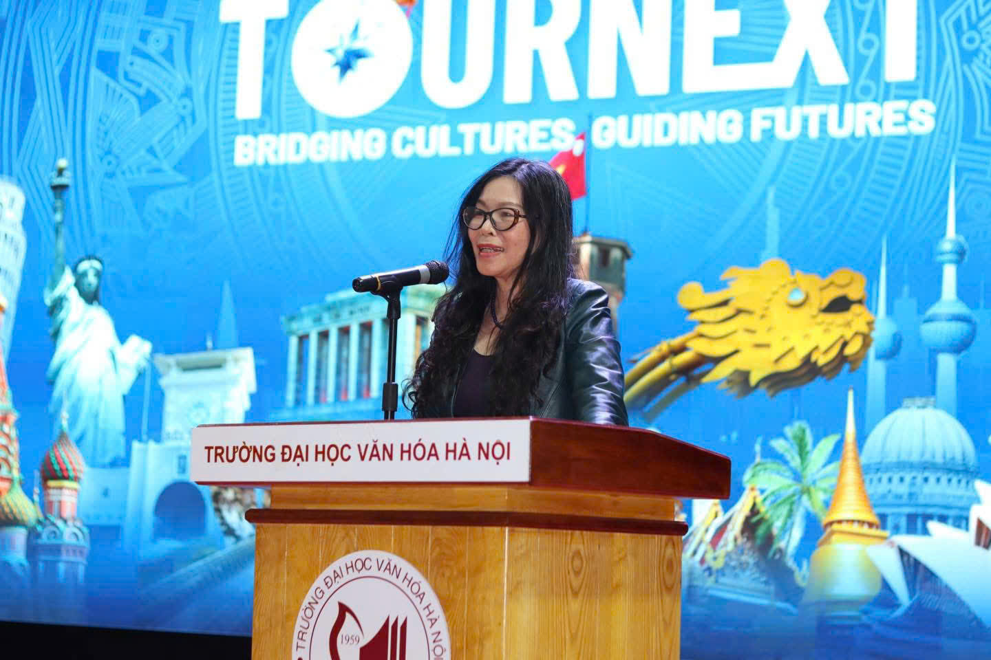 PGS.TS Bùi Thanh Thủy - Trưởng Khoa Du lịch, Trường Đại học Văn hóa Hà Nội phát biểu tại chung kết Cuộc thi TourNext 2025