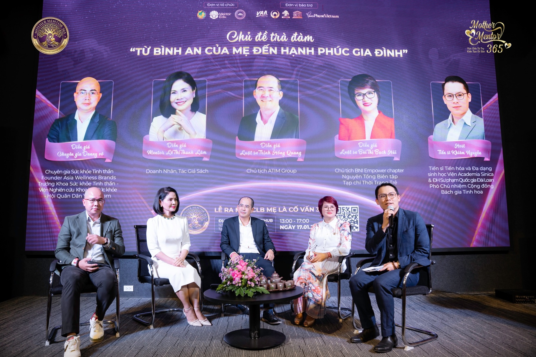 Tại phiên Trà đàm “Từ bình an của mẹ đến hạnh phúc gia đình” dưới sự dẫn dắt của Tiến sĩ Khiêm Nguyễn – Founder 6K International, còn có sự góp mặt và chia sẻ của các diễn giả uy tín: Bà Lê Thị Thanh Lâm: Phó Chủ tịch Hội đồng Tư vấn và Hỗ trợ Khởi nghiệp Quốc gia phía Nam, Nguyên Phó Chủ tịch Hội Nữ Doanh nhân TP.HCM (HAWEE); Luật gia Bùi Thị Bạch Hải: Chủ tịch BNI Empower Chapter, Nguyên Tổng Biên tập Tạp chí Thời Trang Trẻ; Luật sư Trịnh Hồng Quang: Chủ tịch Atim Group; Diễn giả Danny Võ: Chuyên gia sức khỏe tinh thần, Founder Asia Wellness Brands.