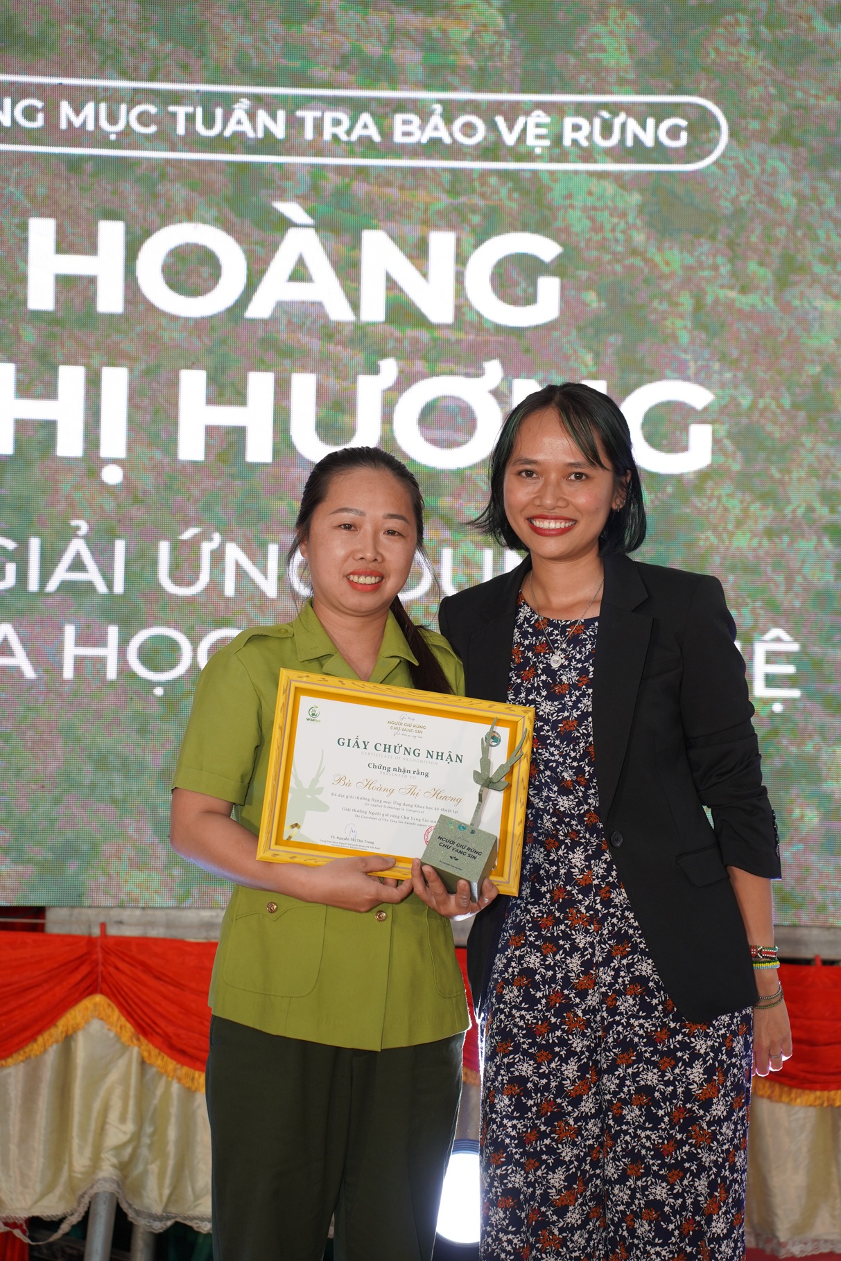 TS. Nguyễn Thị Thu Trang - Sáng lập, Giám đốc WildAct (bên phải) trao giải cho Phòng Khoa Học và Hợp Tác Quốc Tế